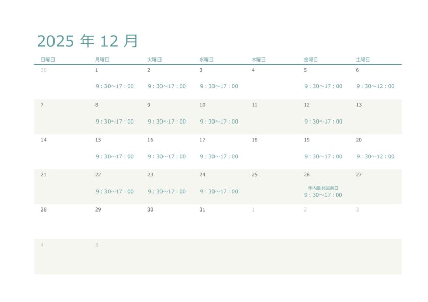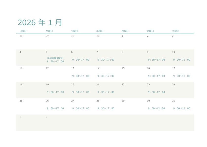 1月は通常と異なる日程で、第2・第3・第5土曜日に診療いたします。
